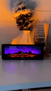 Este calefactor decorativo simula un fuego realista con luces RGB que cambian de color, brindando un ambiente visual único y acogedor.